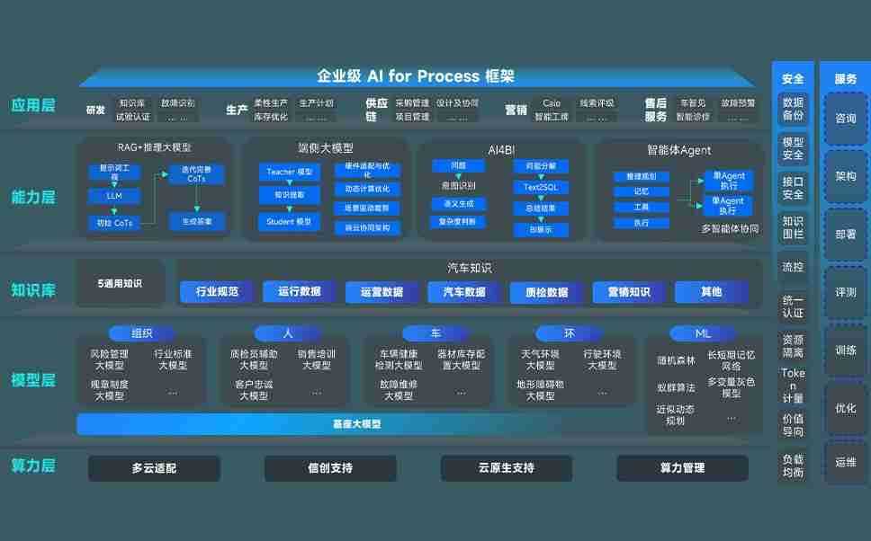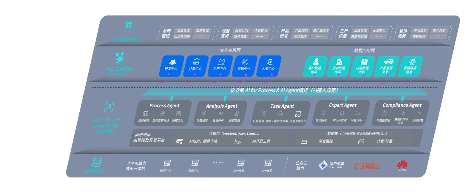 优游ub8问学智车解决方案是一套基于AI技术的汽车行业智能化系统,,,覆盖从底层算力到顶层AI应用的全栈方案。。方案由算力层、、模型层和应用层组成:算力层,,方案支持多种一体机配置,,,具备云端灵活部署、、、、多云适配以及动态优化计算资源的能力;模型层,,,优游ub8问学平台版提供了企业级AI应用一站式构建与管理平台,,,,支持基于后训练强化技术的汽车企业专属模型的训练、、、评测和运营;应用层,,,,优游ub8问学DeepSeek版提供包括超级员工、、、智能招采、、、智能营销、、、智能客服、、、AI for BI等一系列解决方案,,,,可助力汽车行业实现数字化转型,,让管理更智能、、、响应更敏捷。。